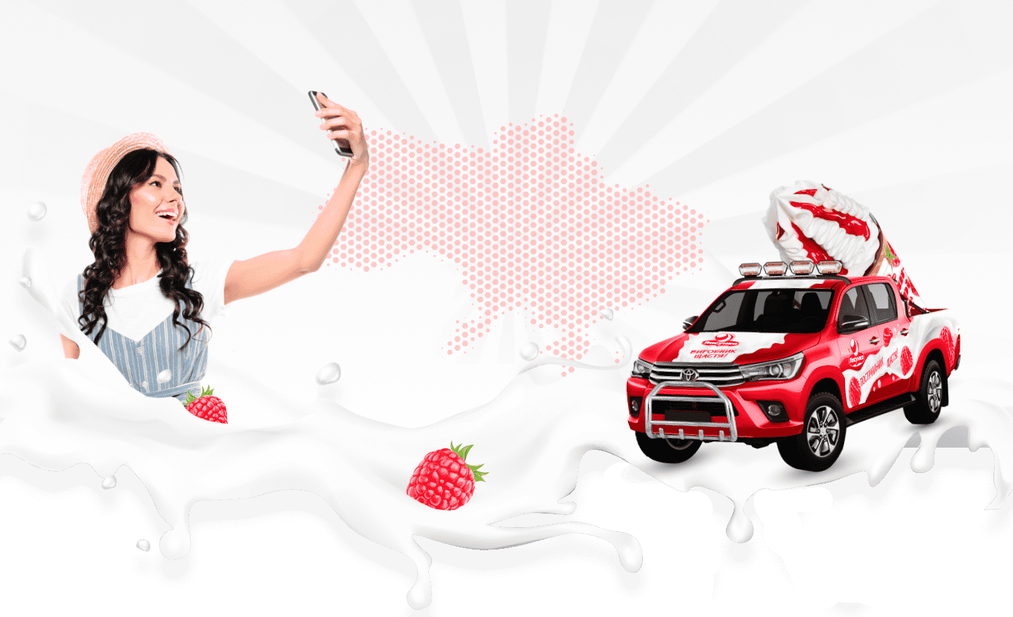 3.2. Для того, щоб взяти участь в Акції, особі, яка відповідає вимогам розділу 2 цих Правил, необхідно у межах Строку проведення Акції зробити фото на фоні рекламного автомобілю «Виробник щастя», який мандруватиме по містах України протягом Строку проведення Акції.